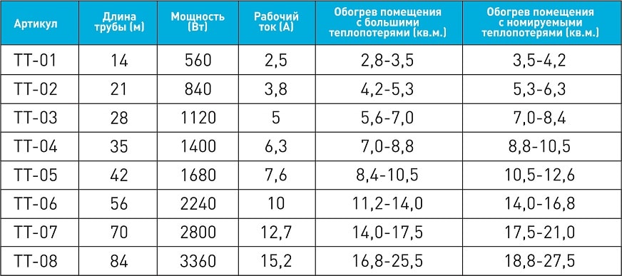 Таблица моделей «Теплотруб»